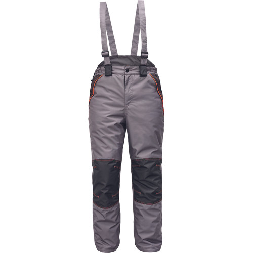 férfi téli bélelt nadrág, levehető kantárral; a térdrészek és a szárak hátsó alsó részei erősítettek; 2 oldalsó zipzáras zseb; 1 hátsó zipzáras zseb