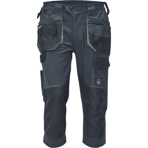 Dinamikus vonalvezetésű, modern szabású férfi 3/4-es nadrág, rugalmas, innovatív TRIFIBETEX® anyagból. Alacsony, gumírozott derékkal készül, láb- és üleprészen tartós, tripla varrásokkal. Praktikus kialakítás: tágas, multifunkcionális első zsebek szerszámtartó pánttal, 2 hátsó zseb Oxford erősítéssel, a combon telefontartó zseb tépőzáras zsebfedővel, külön zsebek vonalzónak, késnek, kalapácsnak, egyedi repülőzseb, D-gyűrű, és szerszámtartó hurok a derékpánton. A munkaruha színeivel harmonizáló fényvisszavető elemekkel egészítettük ki.