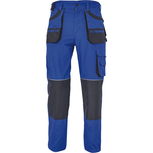 férfi munkanadrág; 6 multifunkciós zseb; OXFORD poliészter erősítésekkel; a térderősítés alá párna helyezhető; a nadrág szára meghosszabbítható; anyaga 100% pamut, 235g/m2