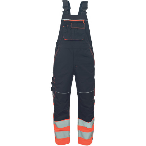 » férfi mellesnadrág rugalmas derékkal és kantárral, 6 funkcionális zsebbel és leengedhető szárakkal » a Nadrágszárakat HI-VIS anyaggal, és 2 nyomtatott fényvisszavető csíkkal kombináltuk » megerősített térdrész és térdzseb Oxford 600D anyagból térdvédő behelyezéséhez » dekoratív részletek és kontrasztos színű tűzések