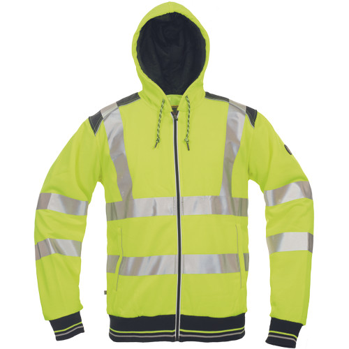 cipzárral» 2 db 5 cm-es szegmentált fényvisszavetőcsíkkal a derékrészen, az ujjakon ésa vállakon» bolyhosodásmentes francia frottír szövetbelső, kétrétegű kapucni, dekoratív tűzések» rugalmas mandzsetta és alsó szegély