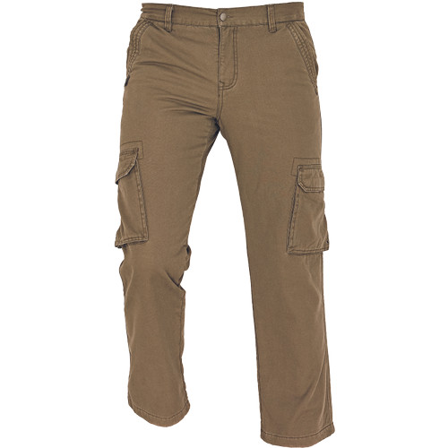 Férfi bélelt cargo nadrág, külső 100% pamutvászon, 235g/m2, belső 100% PES mikropolár 160g/m2. Oldalsó és mellső zsebek, farzsebeken patentos hajtókával. Díszítő tűzéssel készül, szabása sportos.