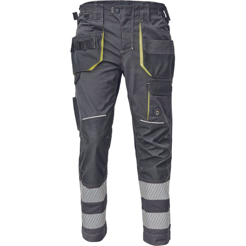 Férfi nadrág rugalmas derékkal és többfunkciós zsebekkel, 7 cm-es szegmentált fényvisszavető csíkokkal. Megerősített térdrész és térdzseb Oxford 600D anyagból térdvédő behelyezéséhez. Ellenálló hármas fedőző varrás az üleprészen és a meghosszabítható szárakon.