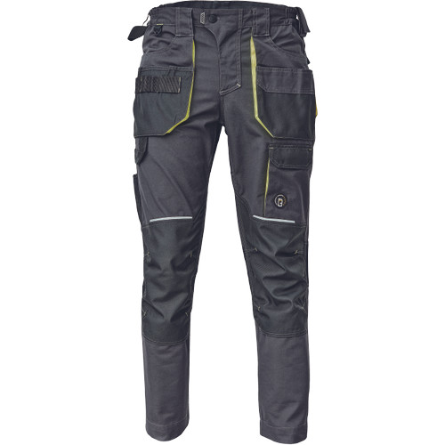 Férfi nadrág rugalmas derékkal és többfunkciós zsebekkel, fényvisszavető díszítéssel. Megerősített térdrész és térdzseb Oxford 600D anyagból térdvédő behelyezéséhez. Ellenálló hármas fedőző varrás az üleprészen és a meghosszabítható szárakon.