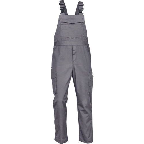 férfi mellesnadrág; rugalmas betét a hátsó részen; 2 oldalsó zseb + 1 érmezseb; 2 oldalzseb; 1 multifunkcionális mellzseb; rugalmas pántok műanyag csatokkal; meghosszabbítható szárhossz; 65% PES/35% pamut, 195 g/m2